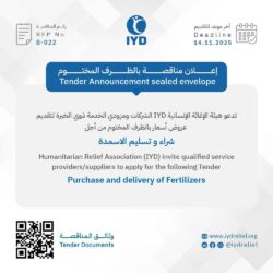 تعلن لجنة الإمداد والتوريد عن رغبتها في تلقي عروض بالظرف المختوم لتنفيذ مشروع تأمين وتوريد إطارات للآليات والمركبات لوزارة الطوارئ وإدارة الكوارث.