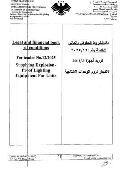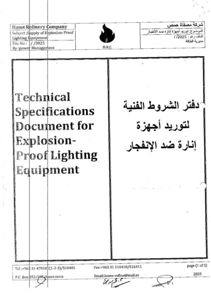 إعلان طلب عروض داخلي/ خارجي للمرة الأولى لتوريد أجهزة انارة ضد الانفجار لزوم أقسام المصفاة